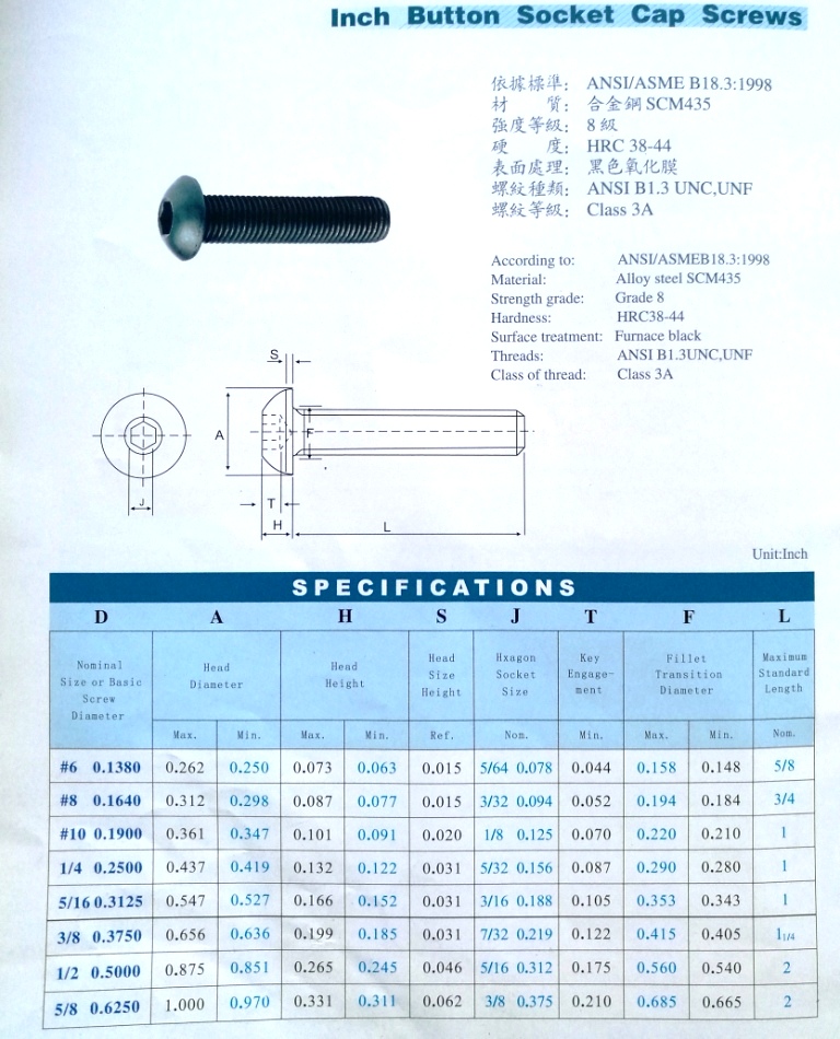 英、美制半圓頭內(nèi)六角螺釘